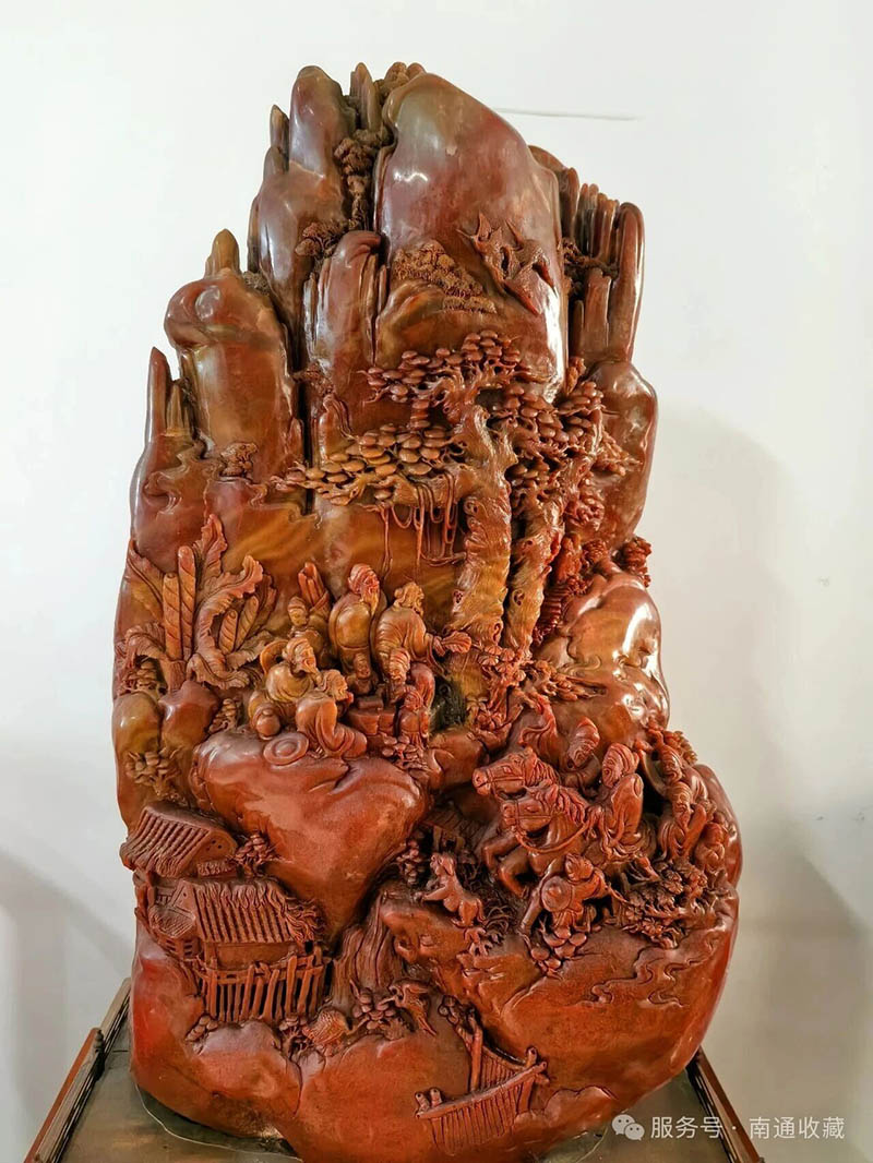 紅石雕山水人物紋山子
